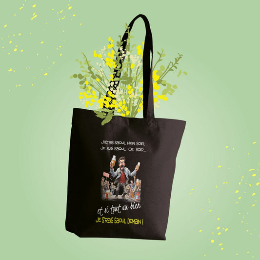 Aperofolies, Plongez dans l'esprit festif et décalé de notre design 100% bio, inspiré de la célèbre chanson humoristique qui résonne lors de toutes les soirées réussies : "J'étais saoul hier soir, je suis saoul ce soir et si tout va bien, je serai saoul demain." Cette phrase est présentée de manière très graphique, avec une mise en page dynamique et colorée qui capte immédiatement l'attention.